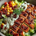 Servieren Sie den BBQ Hähnchen Geschnittenen Salat sofort. Er schmeckt am besten, wenn die gegrillten Hähnchenscheiben noch leicht warm sind und die Aromen des Dressings sich entfalten können. Dieses Gericht ist perfekt als leichtes Mittagessen an einem warmen Tag oder als vollwertige Beilage zu einem Grillfest oder Abendessen.