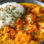 Dieses cremige Hokkaido-Kürbis-Curry ist ein ideales Herbstgericht, das mit aromatischen Gewürzen und Kokosmilch zubereitet wird. Es bietet eine wärmende und sättigende Mahlzeit, perfekt für kühle Tage.