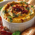 Dieser vielseitige Dip passt hervorragend zu knusprigem Brot wie Fladenbrot, Naan oder Baguette. Er ist auch eine wunderbare Ergänzung zu rohem Gemüse wie Karotten- und Gurkensticks, Paprikastreifen oder Radieschen. Probiere ihn auch zu gegrilltem Halloumi oder als besonderen Aufstrich in einem Sandwich.