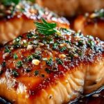 Richten Sie die Lachsfilets entweder auf einzelnen Tellern an oder servieren Sie sie direkt vom Blech, je nach Anlass. Streuen Sie nun die frisch gehackten Kräuter wie Petersilie oder Dill großzügig über den heißen Lachs. Die grünen Kräuter verleihen dem Gericht nicht nur eine frische Farbe, sondern auch ein wunderbares Aroma, das die Süße des Honigs und die Würze der Marinade perfekt ergänzt.