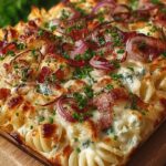 Flammkuchen Pasta Oven combines the best of German comfort food with Italian pasta. This hearty dish features golden-brown chicken, caramelized onions, and tender pasta in a creamy sauce, all baked to perfection with a generous layer of melted cheese.