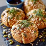 Eine einfache und dennoch wirkungsvolle Dekoration für Ihre Linsenbrötchen ist das Bestreuen mit frischen Kräutern kurz vor dem Servieren. Feingehackte Petersilie, Schnittlauch oder Dill verleihen nicht nur eine frische Note, sondern auch eine attraktive grüne Farbe, die einen schönen Kontrast zur goldenen Kruste bildet. Eine kleine Scheibe Zitrone oder Limette auf dem Teller rundet das Bild ab und bietet die Möglichkeit, den Geschmack nach Belieben aufzufrischen.