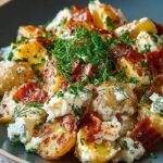 Dieser krosse Kartoffelsalat ist nicht nur ein Genuss für den Gaumen, sondern auch ein Fest für die Augen. Seine bunten Farben und die frischen Zutaten machen ihn zu einem Blickfang auf jeder Tafel. Er ist der Beweis dafür, dass einfache Gerichte mit Liebe und Sorgfalt zubereitet zu wahren Gaumenfreuden werden können. Genießen Sie diesen wunderbaren Salat und lassen Sie sich von seiner Frische und seinem Geschmack begeistern – er ist perfekt für gesellige Anlässe und warme Sommertage.
