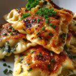 - Vegetarische Variante: Ersetze das Hühnchen durch gebratenen Tofu oder eine Mischung aus Pilzen und Spinat. Du könntest auch etwas Ricotta hinzufügen, um die Füllung noch cremiger zu machen.
