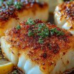 Servieren Sie den knusprigen Kabeljau sofort, solange er noch heiß und die Panade perfekt knusprig ist. Dies ist der Moment, in dem dieses Gericht seinen vollen Geschmack und seine beste Textur entfaltet. Ein schnelles, gesundes und unglaublich leckeres Gericht, das Sie immer wieder zubereiten möchten.