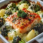 Dieses köstliche Lachs-Brokkoli-Gratin vereint zarten Lachs und leuchtenden Brokkoli in einer cremigen Sauce, gekrönt mit geschmolzenem veganem Käse. Es ist ein sättigendes und einfach zuzubereitendes Hauptgericht, perfekt für jede Gelegenheit.