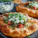 • Serviere die Langos mit Sauerrahm und frischem Schnittlauch für einen köstlichen Geschmack.