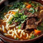 This hearty Lanzhou Beef Noodle Soup is a classic comfort dish, known for its rich broth and tender beef. It’s a satisfying meal perfect for any day of the week.