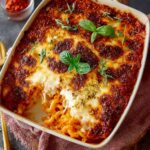 Bestreue die Oberfläche der Auflaufform großzügig mit etwas zusätzlichem geriebenem Käse. Dies sorgt für eine wunderschöne goldbraune und knusprige Käsekruste, die jeden Bissen zu einem Hochgenuss macht. Stelle die Auflaufform in den vorgeheizten Ofen und backe den Auflauf für etwa 25 Minuten. Die Backzeit kann je nach Ofen leicht variieren. Der Auflauf ist fertig, wenn der Käse schön goldbraun und blubbernd ist und die Ränder leicht gebräunt sind. Ein himmlischer Duft wird dich begleiten!