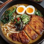 Dieses Rezept bietet ein authentisches Miso-Ramen-Erlebnis zu Hause, komplett mit knusprigem Hähnchen Katsu. Perfekt für ein befriedigendes und geschmackvolles Abendessen.