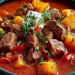 Die Zubereitung mag auf den ersten Blick anspruchsvoll erscheinen, doch die Schritte sind erstaunlich einfach und das Ergebnis ist jedes Mal ein Fest für die Sinne. Freuen Sie sich auf ein Gulasch, das mit Liebe gemacht ist und mit jedem Löffel die Seele wärmt. Dieses Gericht ist perfekt für gemütliche Abende, Familienessen oder einfach, wenn Sie sich selbst etwas Gutes tun möchten.