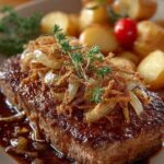 Dieser herzhafte Zwiebelrostbraten nach Omas Rezept verspricht zartes Rindfleisch in einer reichhaltigen Sauce mit karamellisierten Zwiebeln. Ein ideales Gericht für ein wärmendes und traditionelles Familienessen.