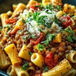 This quick and easy one-pot pasta with lentils is perfect for a busy weeknight meal. It’s packed with fresh vegetables and flavorful herbs, offering a nutritious and satisfying dish for the whole family.