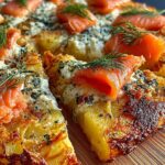 Eine innovative Kartoffelpizza mit rauchigem Lachs und cremigem Frischkäse, perfekt für ein schnelles und dennoch raffiniertes Abendessen.