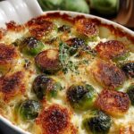 A comforting and savory Brussels sprout and potato gratin, baked to golden perfection with a cheesy topping. This dish is a delightful way to enjoy seasonal vegetables.