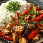 Diese schnelle chinesische Hähnchenpfanne mit Reis ist ein würziges Wok-Gericht, das in nur einer Stunde zubereitet ist. Es kombiniert zarte Hähnchenstücke mit frischem Gemüse und einer aromatischen Sojasauce zu einer vollständigen Mahlzeit.