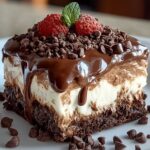 Eine dekadente und cremige Schokoladen-Lasagne ohne Backen, die mit einer Keksbasis, einer reichhaltigen Schokoladen-Frischkäse-Füllung und frischen Beeren überzeugt. Dieses einfache Dessert ist perfekt für besondere Anlässe oder als süßer Abschluss eines jeden Essens.
